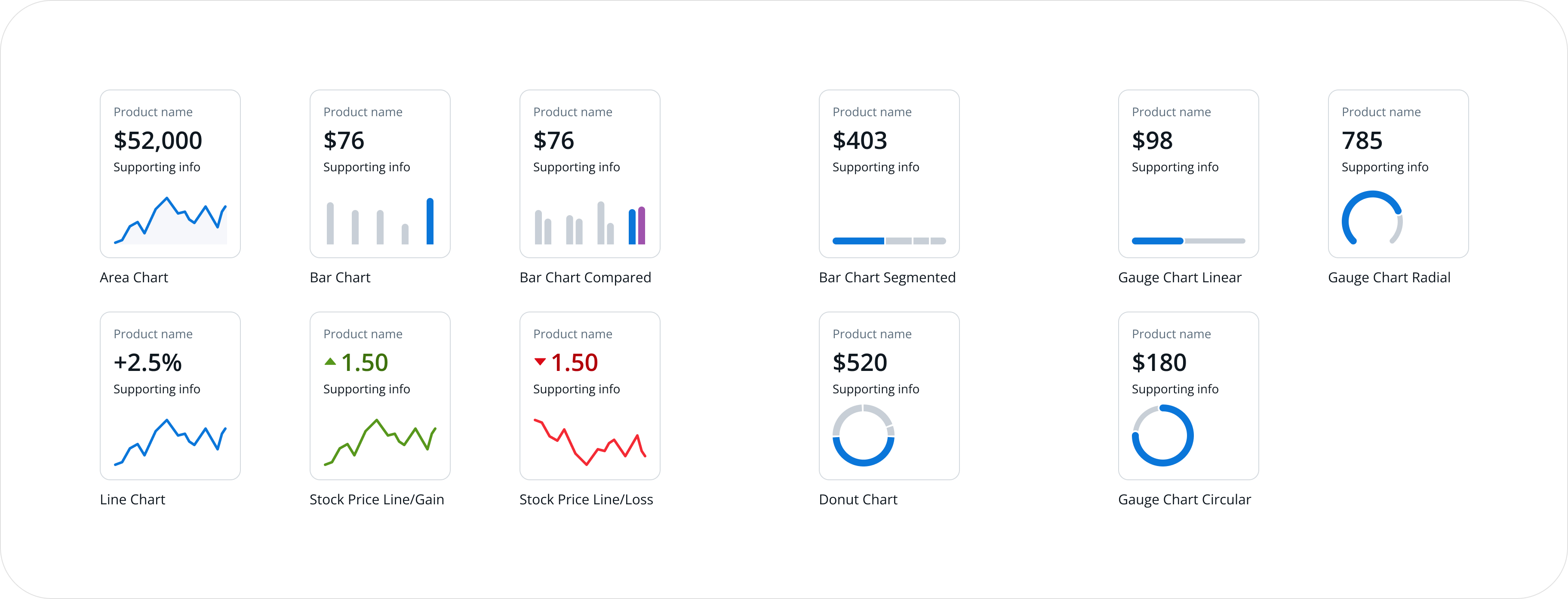 Most customers interact with digital experiences at a surface level—occasionally seeking additional context, but rarely exploring deeply. To support this behavior, data skim charts present information that is easy to scan at a glance while still communicating what matters most. They prioritize clarity, relevance, and hierarchy to help users understand key information quickly and confidently.