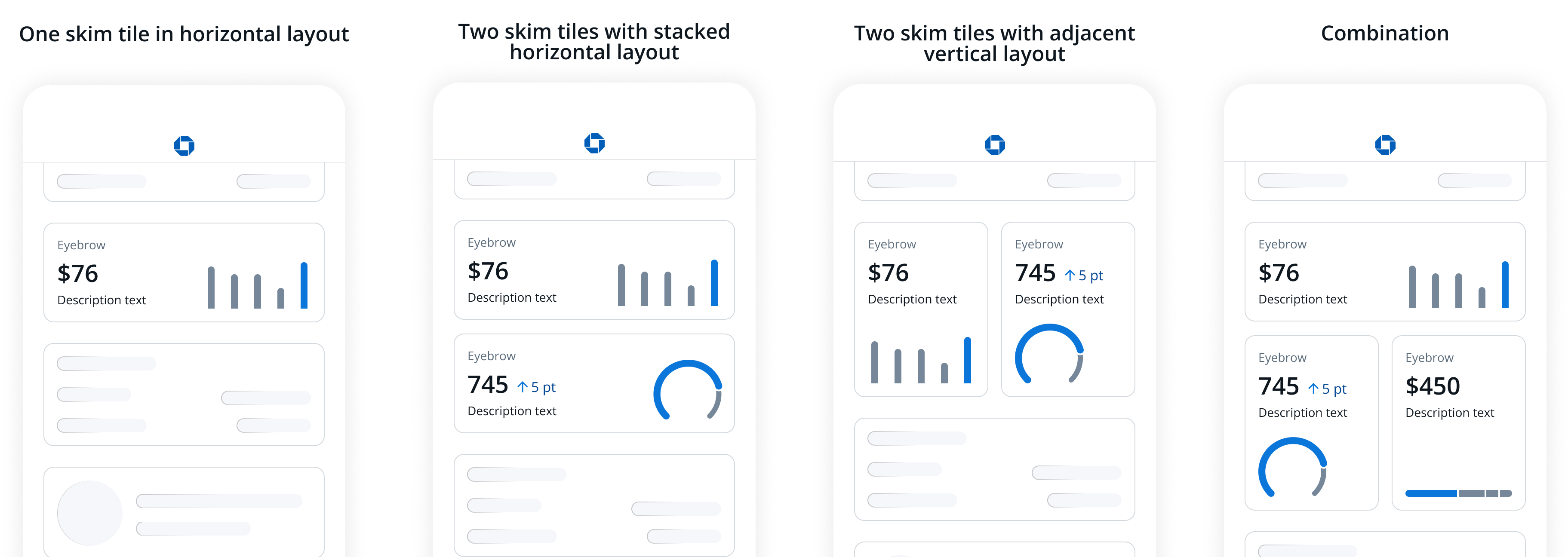 When utilizing multiple skim tiles, consider overall product context and see the following guide on how to combine them in a section.
